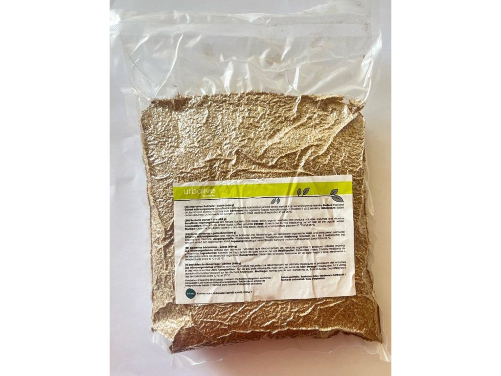 Bokashi bakterie jsou suchý fermentační startér – směs přírodních účinných mikroorganismů, které aktivují a urychlují proces fermentace v Bokashi kompostéru. Stačí jimi pravidelně posypávat organický odpad v nádobě a živé organismy se samy aktivují kontaktem s materiálem, zahájí fermentaci bez přístupu vzduchu a rozloží odpad na hodnotný fermentovaný materiál a přírodní hnojivo.
