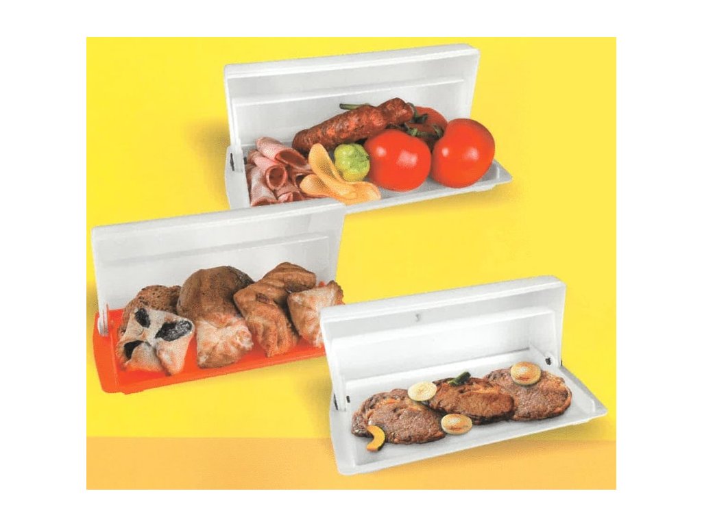 Univerzální box na potraviny ve kterém lze podávat potraviny s ochranou proti vnějším vlivům prostředí jako jsou třeba mouchy nebo prach, zdravotně nezávadný.