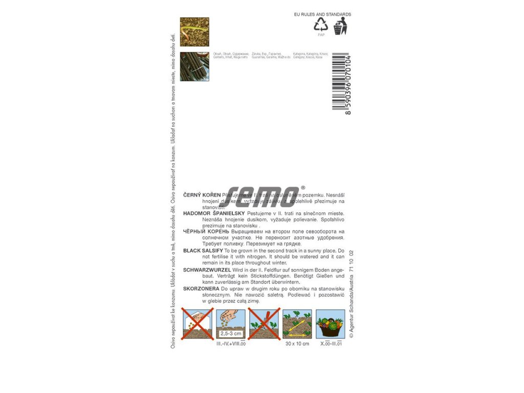 Kořen dlouhý 20 – 30 cm je válcovitý, tupě zakončený, tmavohnědý až černohnědý. Dužnina je krémově bílá, mramorovaná, velmi jemná, výborné chuti. Má vysokou biologickou hodnotu, obsahuje sacharid inulin, který velmi dobře snáší diabetici. Vyžaduje časný jarní výsev, spolehlivě přezimuje na stanovišti.