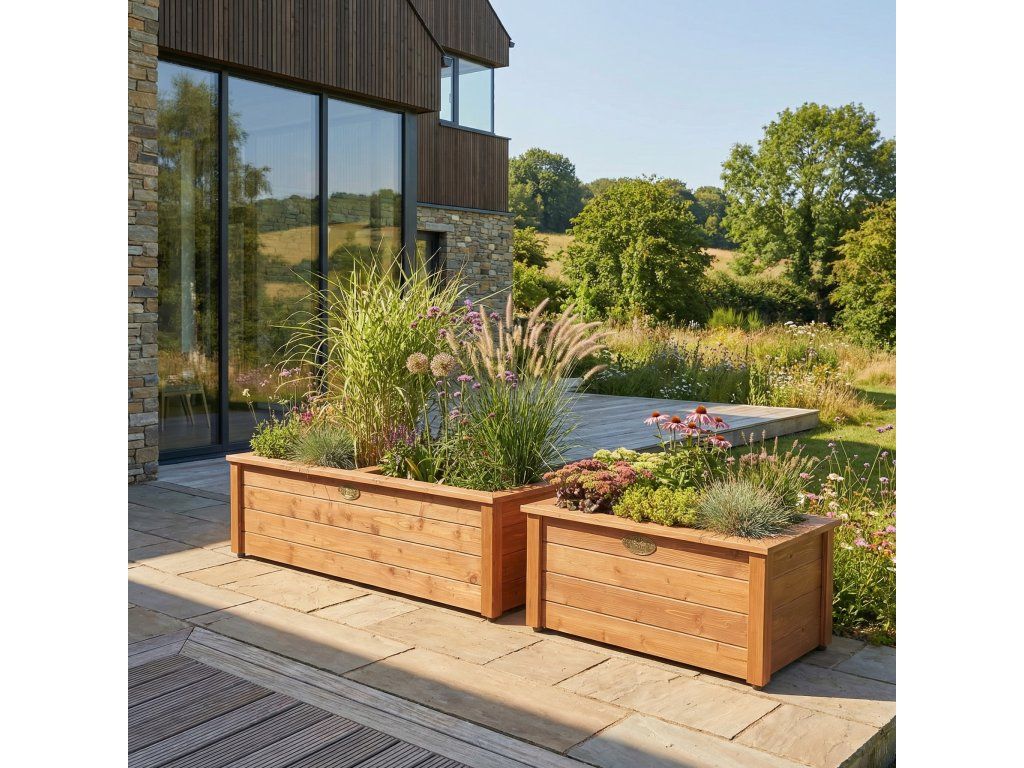 Povrch je ošetřen kvalitním olejovým nátěrem, který přirozenou kresbu smrku krásně vytáhne a zároveň dřevo ochrání před vlhkostí i UV zářením. Uvnitř dřevěného pláště najdete 2 kusy plastového truhlíku Terra 80 v antracitové barvě – mrazuvzdorný, snadno vyjímatelný, ideální pro zalévání i přesazování bez zbytečného nepořádku.