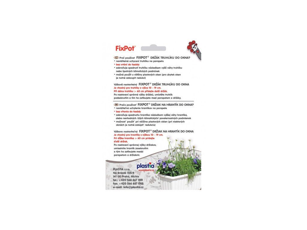 - Zabraňuje spadnutí truhlíku důsledkem vyšší váhy truhlíku nebo špatných klimatických podmínek.