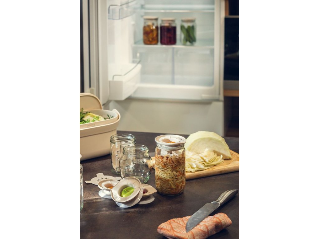 - Pozor: při kvašení může vytékat tekutina. Pod sklenici doporučujeme dát talířek.