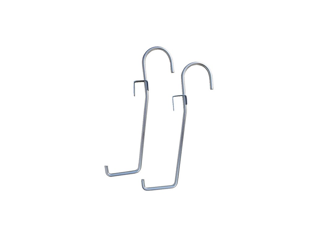Hák je určen pro zavešení na kulaté zábradlí (specifikováno na kulaté zábradlí o průměru 5cm).