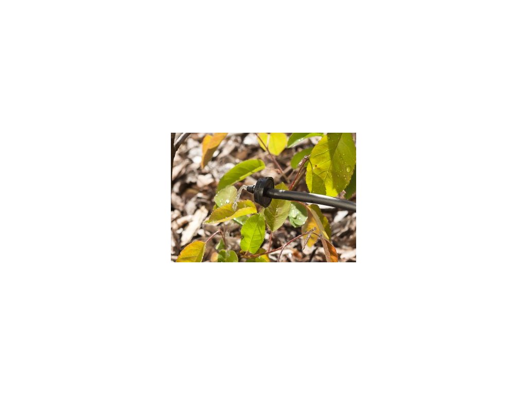 Na jeden konektor napojte jen jeden kapkovač a umístěte kapkovač ke kořenům rostliny. Hadičku i kapkovač můžete zahrnou mulčovací kůrou nebo jiným substrátem.