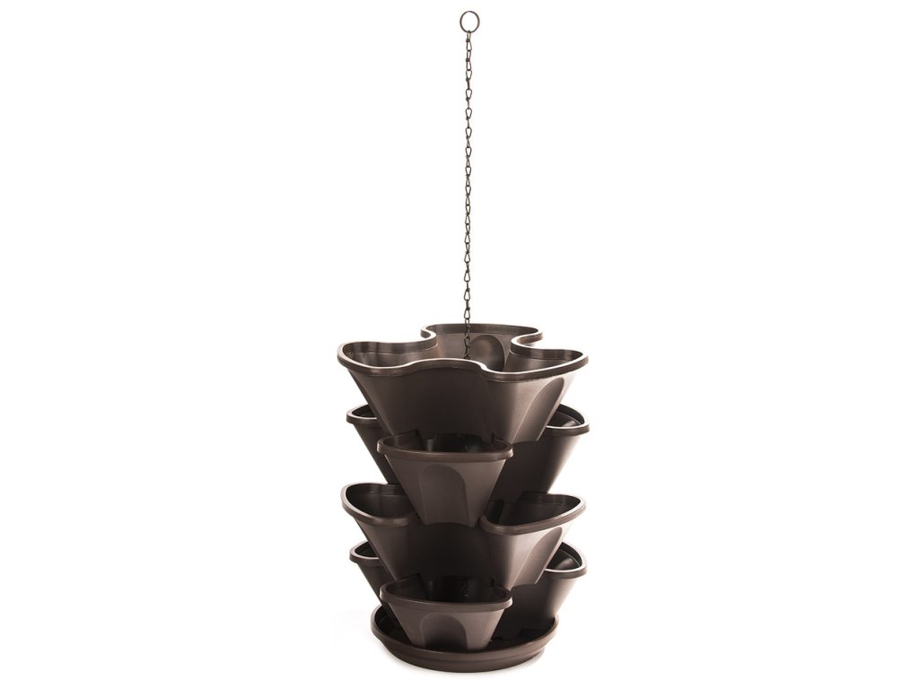 Ideální řešení pro pěstování rostlin na malém prostoru. Čtyřpatrový plastový květináč je skvělý pro pěstování okrasných květin, zeleniny, bylinek i jahod. Je jen na vás, jestli ho postavíte na zem nebo zavěsíte na řetízek o max. délce 75 cm.