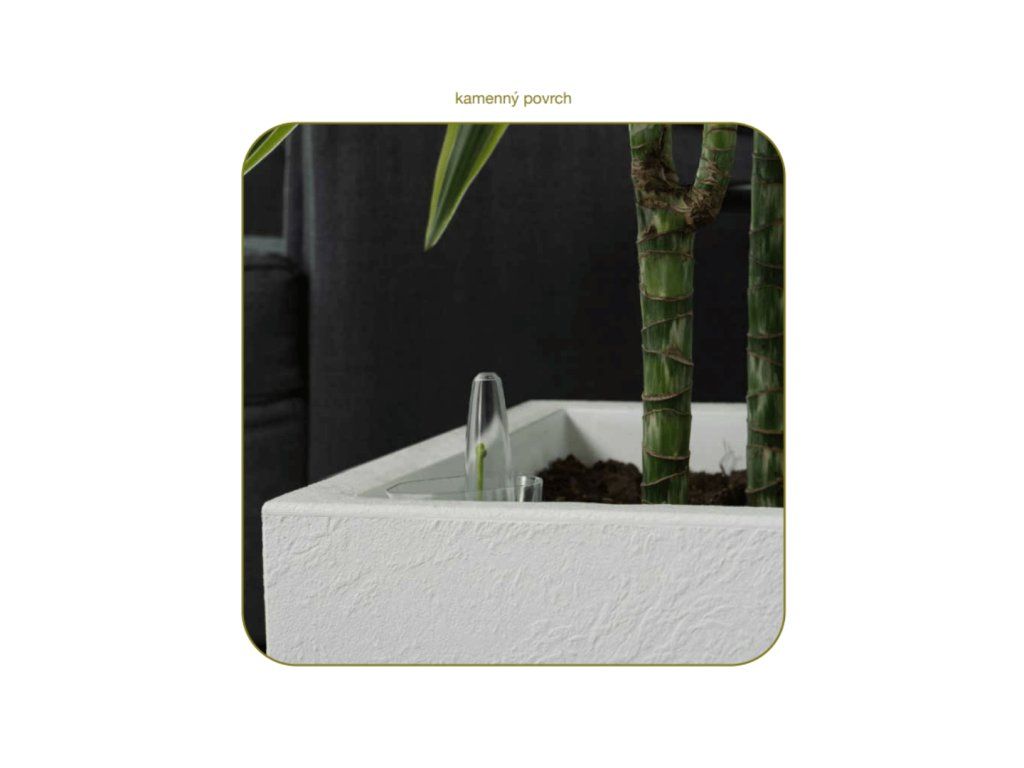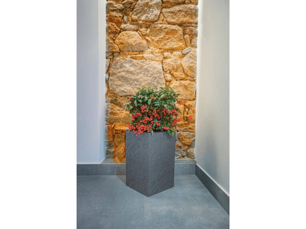 CUBICO STONE 27 × 27 × 42 cm je volba pro rostliny, které potřebují výšku. Čtvercová základna s výškou 42 cm dává nádobě vzpřímený, elegantní charakter, který přirozeně vede pohled nahoru a opticky prodlužuje prostor. Textura imitující přírodní kámen a antracitový povrch zajišťují, že květináč vypadá jako materiálově hodnotný kus – nikoli jako plastová nádoba.