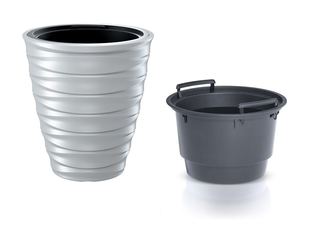 Květináč FREZE s povrchem zdobeným vodorovnými drážkami vám umožňuje vytvářet krásné, jedinečné interiéry a uspořádat prostor kolem domu, sladit různé styly a preference. Dodává se s vkladem.