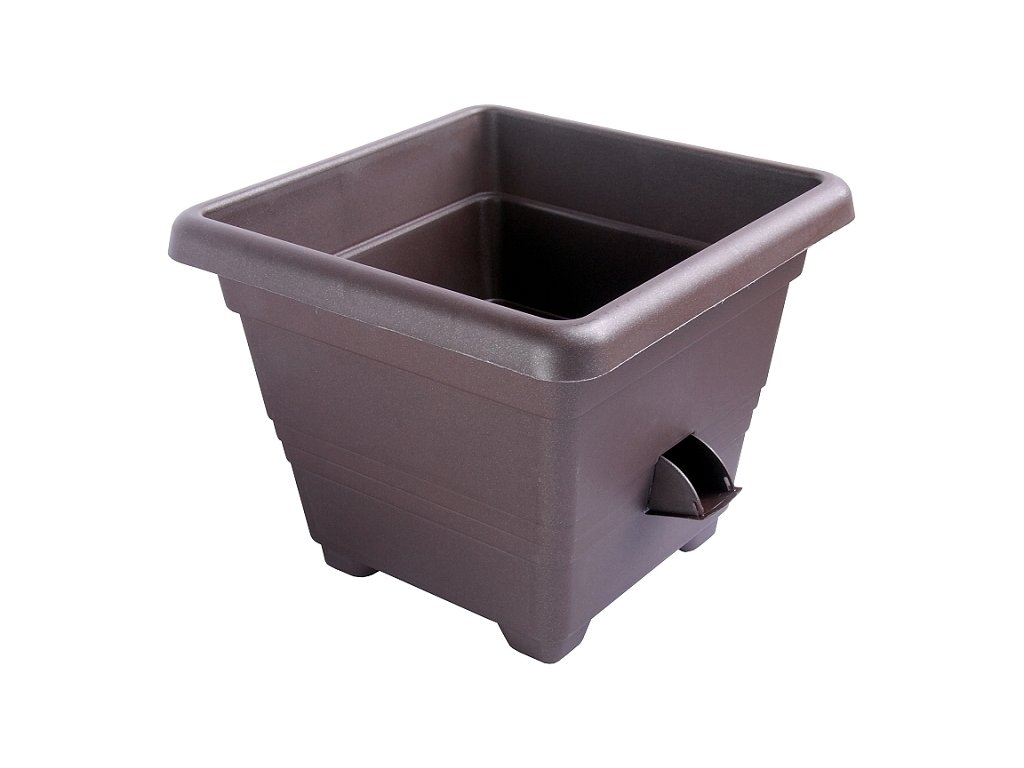 Praktický samozavlažovací květináč čtvercového půdorysu hladkým povrchem. Přístup vzduchu ke kořenům je zajištěn výklopným otvorem, který zároveň slouží k zalévání květin a jako přepadový otvor. Vhodný pro pěstování zeleniny, ale i pro všechny druhy letniček.