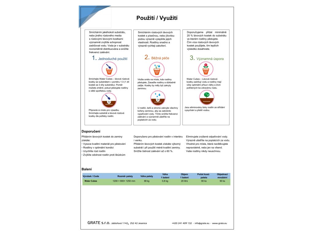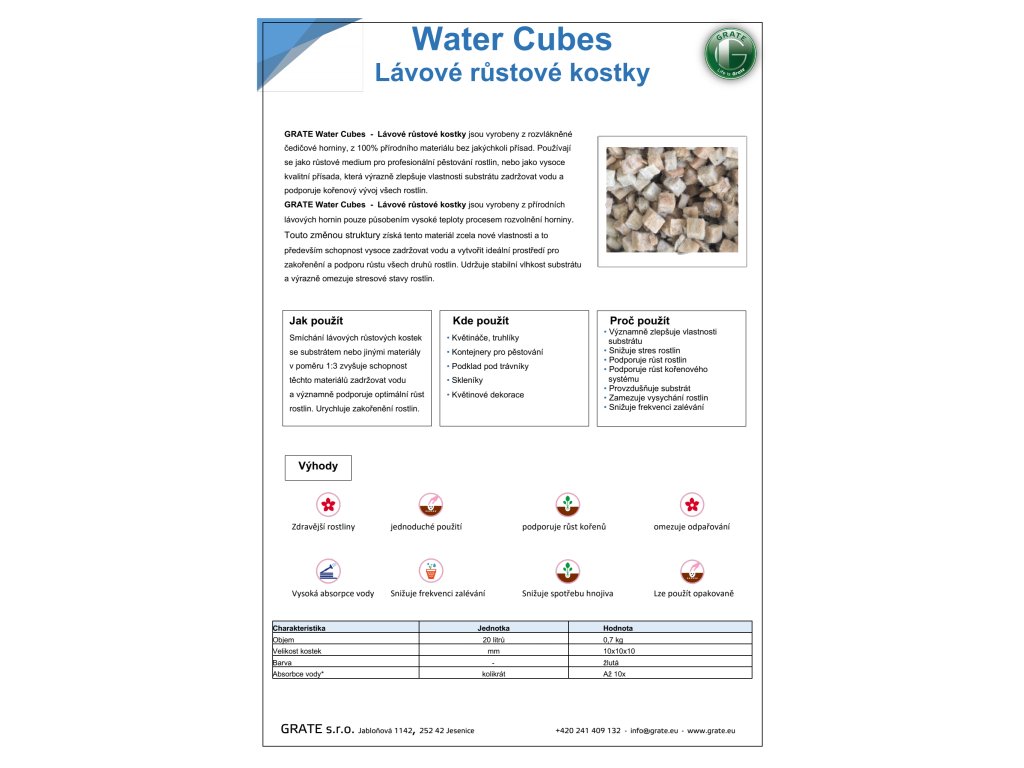 GRATE Water Cubes - Lávové růstové kostky jsou vyrobeny z rozvlákněné čedičové horniny, z 100% přírodního materiálu bez jakýchkoli přísad. Používají se jako růstové medium pro profesionální pěstování rostlin, nebo jako vysoce kvalitní přísada, která výrazně zlepšuje vlastnosti substrátu zadržovat vodu a podporuje kořenový vývoj všech rostlin.