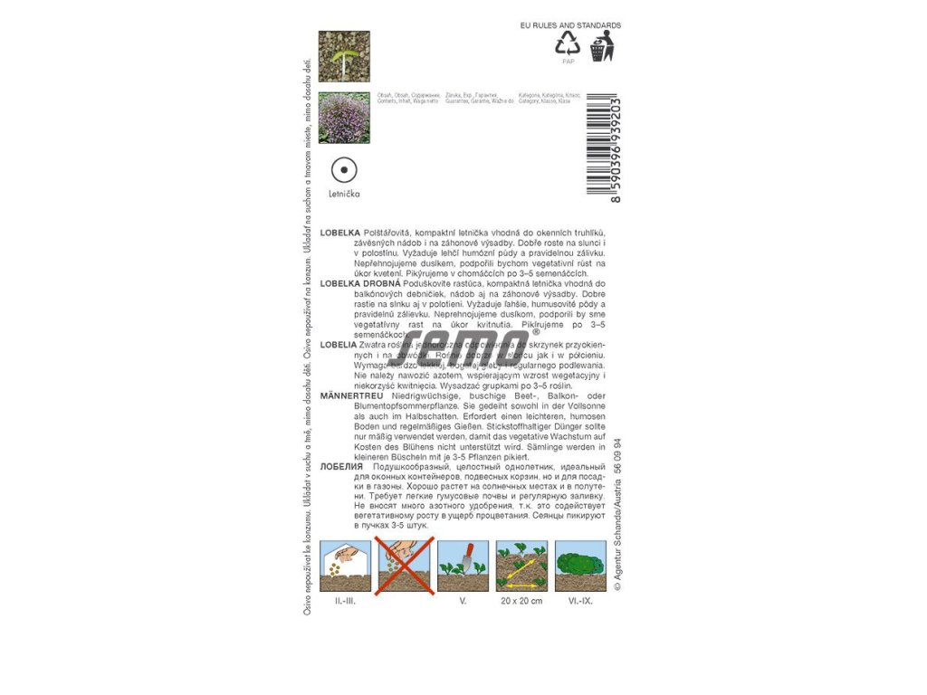 Polštářovitá letnička vhodná do okenních truhlíků, na obruby i na záhonové výsadby. Dobře roste na slunci i v polostínu. Vyžaduje lehčí humózní půdy a pravidelnou zálivku. Po přehnojení dusíkem kvete pozdě a málo. Přepichujeme v chomáčcích po 3 – 5 semenáčcích, dosáhneme tím silné rostliny. Nezvyklá růžově fialová barva květů, výška 15 cm