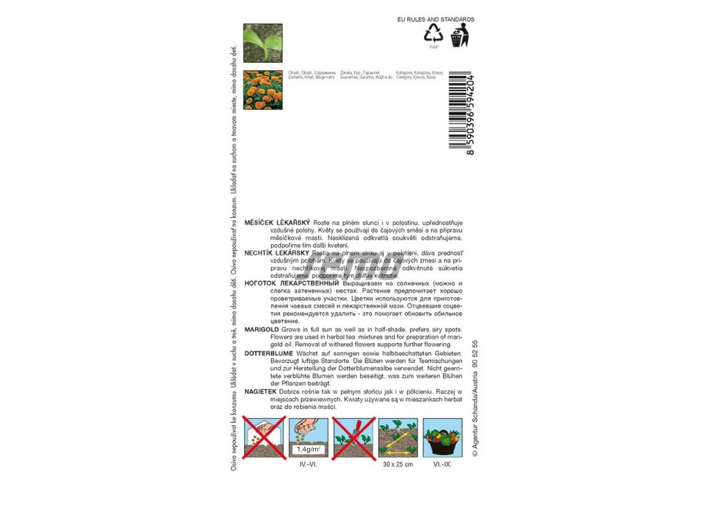 Jednoletá bylina kvetoucí jasně oranžovými velkými úbory. Květy sbíráme celé, sušíme pomalu ve stínu při teplotě do 35 °. Z květů se získává žluté potravinářské barvivo, jako léčivá droga slouží při léčbě poruch žlučníku a jater, květy jsou součástí léčivých bylinných směsí pro vředové choroby žaludku. Zevně se používá měsíčková mast na hojení ran, v kosmetice na zjemnění pokožky a léčbu některých kožních chorob. Čaje a extrakty z mladých listů mají čistící a antiseptické účinky. Dobře roste v půdě chudé na dusík a na slunečném stanovišti.