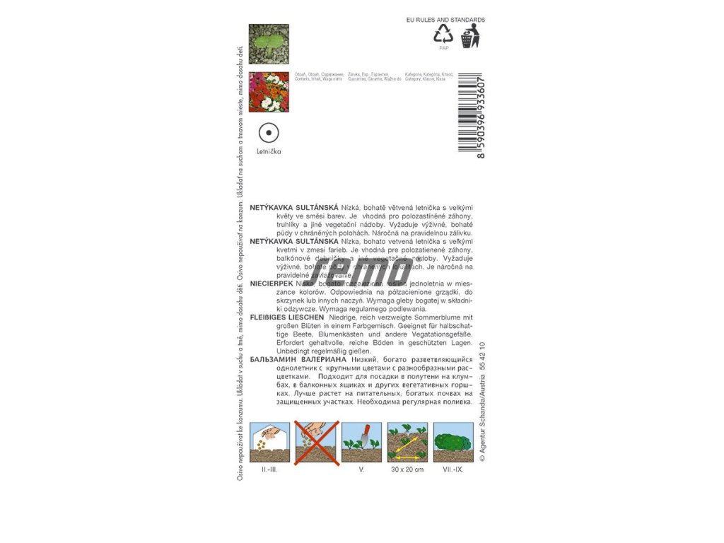 Oblíbená, bohatě větvená letnička s pětičetnými až 2 cm velkými květy. Je vhodná pro záhony, truhlíky a jiné vegetační nádoby. Vyžaduje polostín a výživné, bohaté, mírně vlhké půdy v chráněných polohách. Rostlina je náročná na pravidelnou zálivku. Směs bílých, růžových, oranžových, fialových, šarlatových a karmínových rostlin, začíná kvést časně a kvete bohatě po celou sezónu, výška 15 – 20 cm.