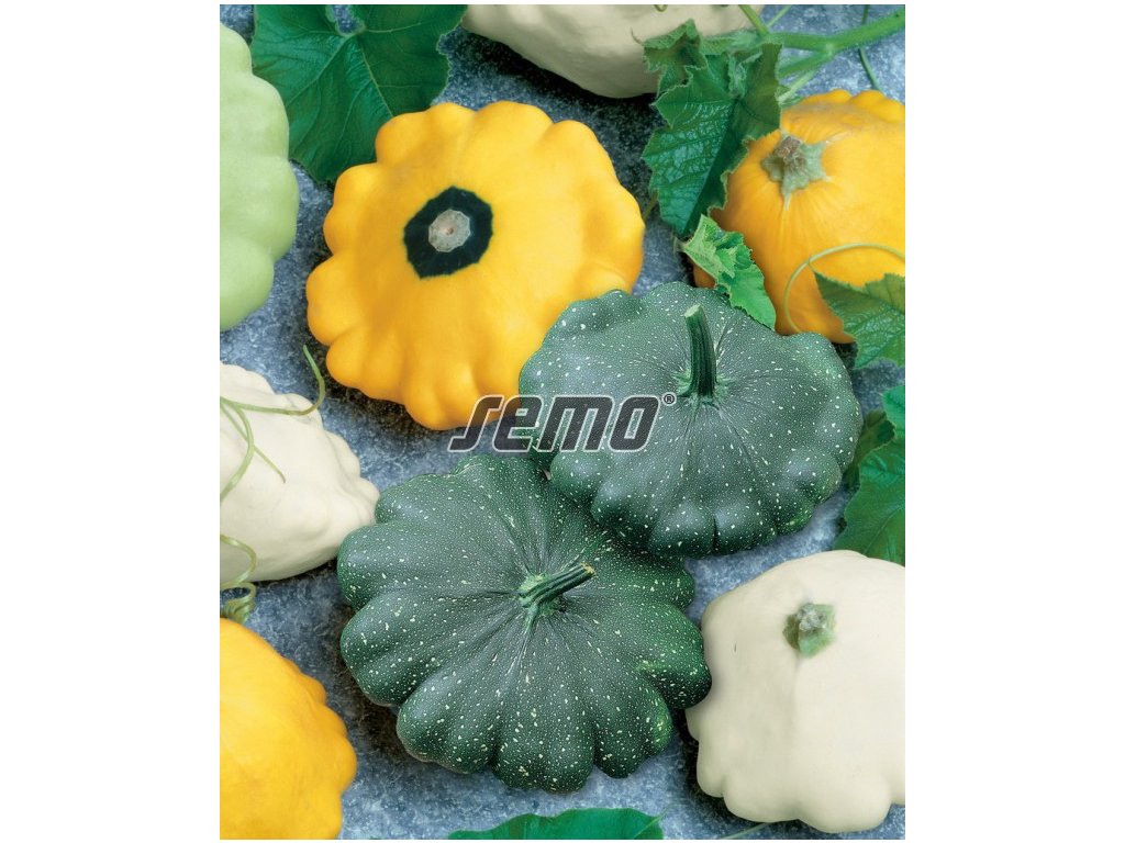 Směs bílých, zelených a žlutých patizonů. Plod je diskovitý, s pevnou kompaktní dužninou. Semena jednotlivých odrůd jsou barevně odlišena. Barva semen odpovídá barvě plodu.
