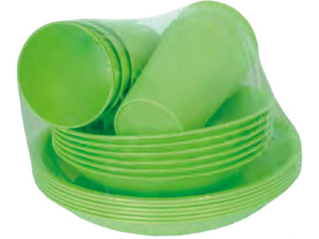 Piknikový a kempingový set obsahující šest kusů velkého talíře, šest kusů malého talíře a šest kusů kelímku. Souprava na jídlo a pití pro celou rodinu. Ideální pro pikniky, kempování, večírky, grilování, cestování i každodenní použití, zdravotně nezávadné.
