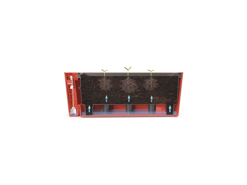 - horizontální systém měření hladiny vody je pevnou součástí truhlíku