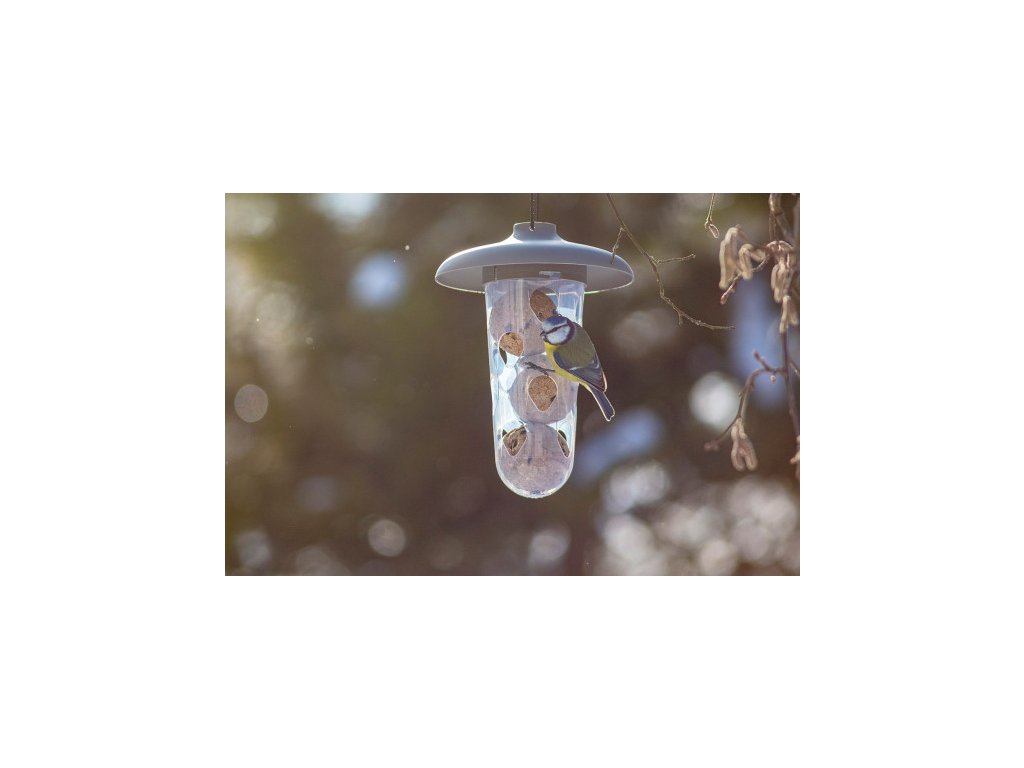 Pestrý jídelníček! Rozmazlujte ptačí hosty pestrou stravou, nabídněte tukovou směs, bobuloviny, olejná semena nebo lojové koule. Krmítko Robin má v této variantě dva zásobníky pro různé typy mlsání: na sypkou směs i lojové koule. Krmítka instalujte pouze zavěšením na šňůrku. Šňůrky jsou součástí balení.