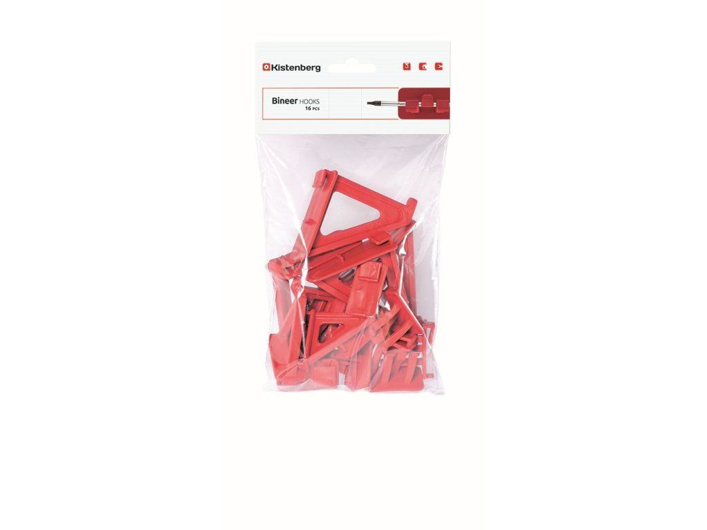 Sada držáků BINEER HOOKS na montážní panely, červené, 16 ks