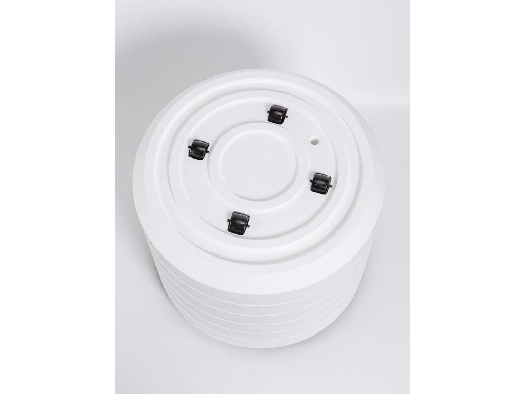 Vložka je obepnuta prstencovým zalévacím prostorem, do kterého přiléváte vodu – ta se přirozeně dostává ke kořenům a zároveň zajišťuje přísun vzduchu, takže kořeny nezdusí. Zásobník 12 litrů pokryje potřeby rostliny na několik dní až týdnů podle druhu a ročního období.