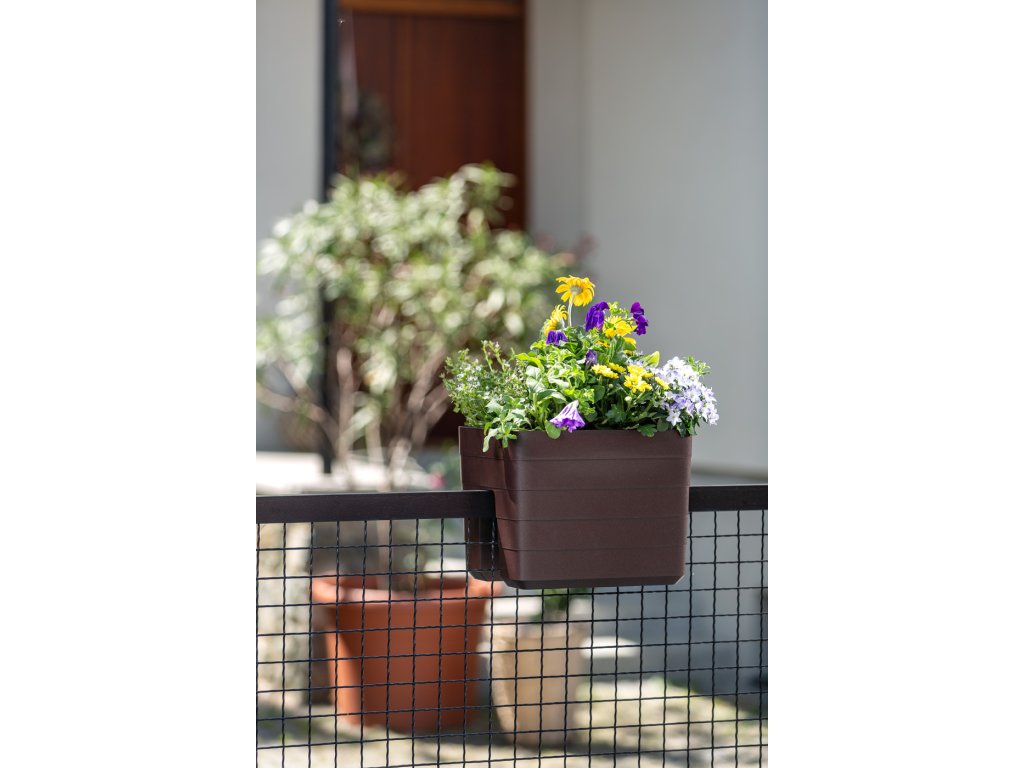 Samozavlažovací květináč na zábradlí PLASTIA BERBERIS 30 čokoláda