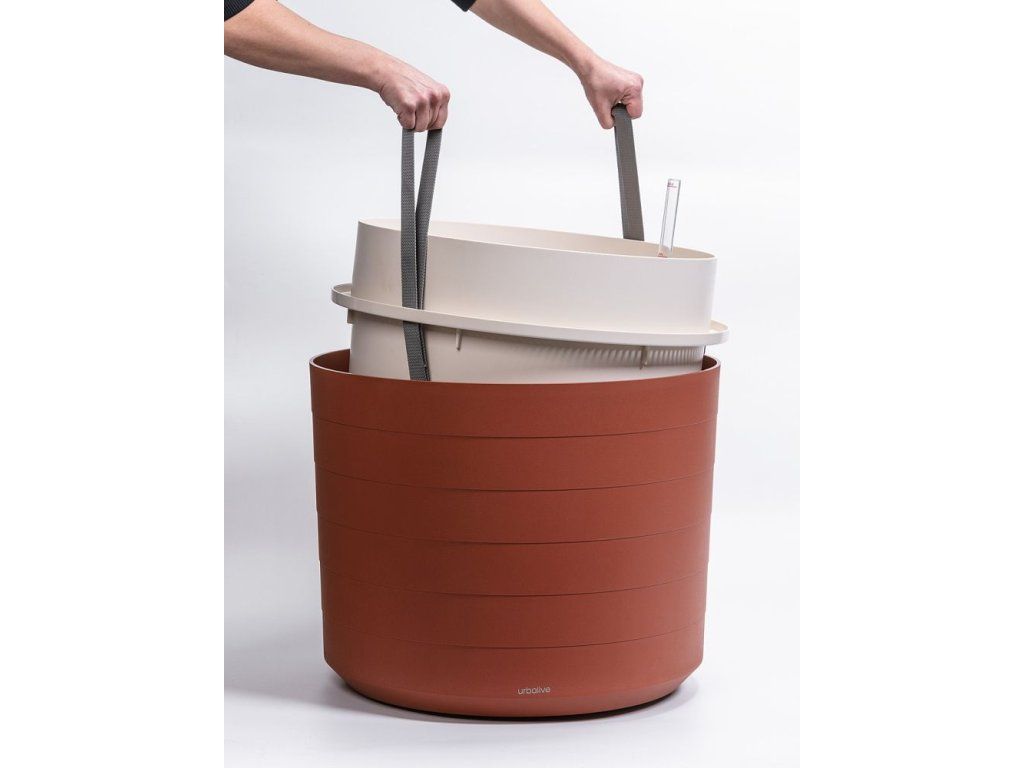 Vložka je obepnuta prstencovým zalévacím prostorem, do kterého přiléváte vodu – ta se přirozeně dostává ke kořenům a zároveň prostor zajišťuje přísun vzduchu, takže kořeny nezdusí. Zásobník pokryje potřeby rostliny na několik dní až týdnů podle druhu a ročního období.