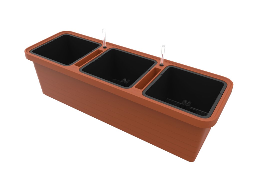 Samozavlažovací truhlík PLASTIA BERBERIS TRIO 117x39x35 terakota