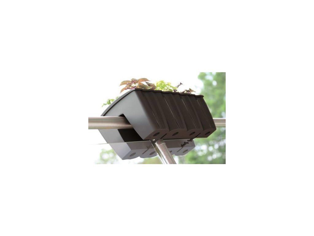 Truhlík Crown se vyznačuje inovativní konstrukcí, která umožňuje nasazení nádoby přímo na zábradlí, k němu se pak připevní speciálními držáky. Je odolný vůči mechanickým poškozením. Nepodléhá nepříznivému vlivu slunečního záření a zachovává si svou přirozenou barvu.Určen pro zábradlí do pr. 6 cm.