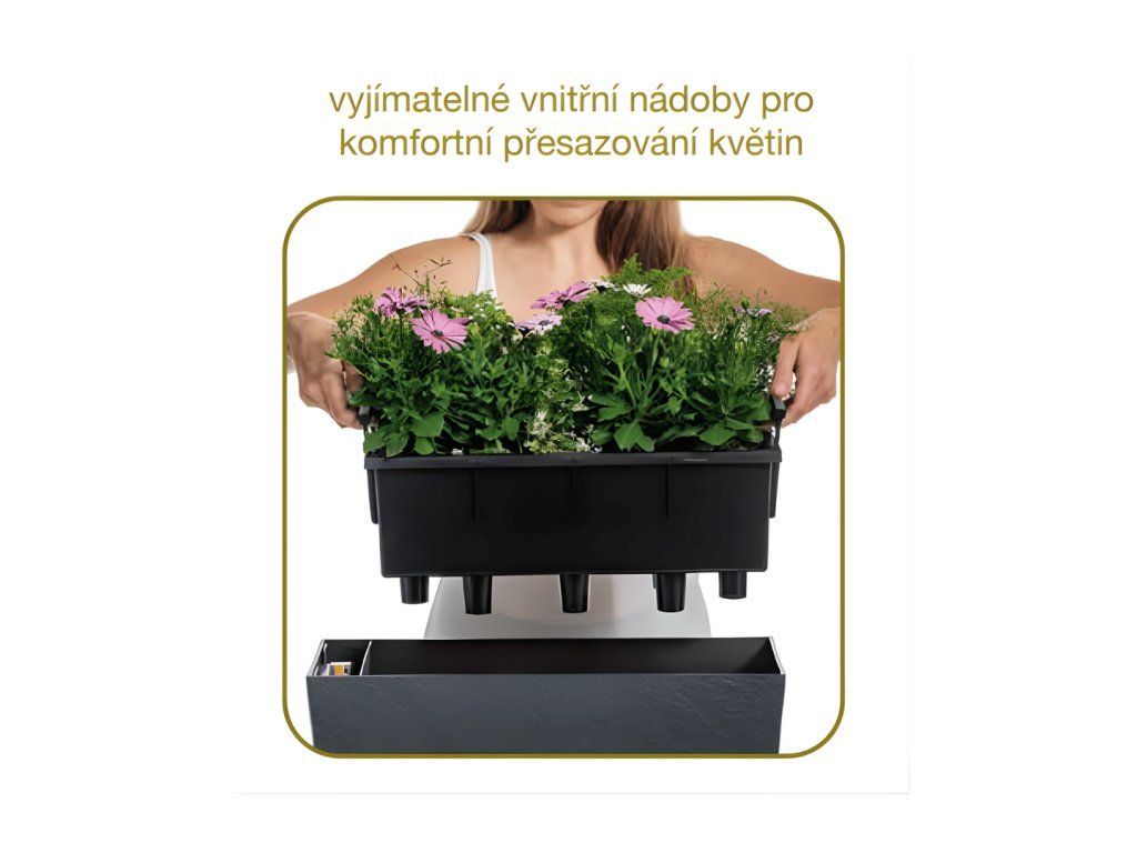 Vnitřní nádoba se jednoduše vytáhne pomocí úchytek. Rostlinu tak přesadíte nebo přenesete na zahradu bez zbytečného nepořádku a přehazování hlíny. Pro pravidelné pěstitele je tohle jeden z nejpraktičtějších detailů celého produktu.