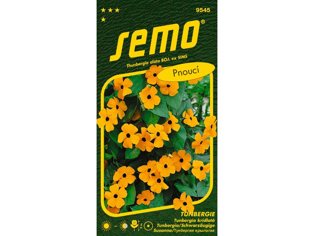Pnoucí letnička vhodná na balkóny a k pergolám. Pro své oranžově žluté květy s černými středy je lidově nazývaná Černooká Zuzana. Vyžaduje polostín, polohu chráněnou před větrem a propustnou půdu s pravidelnou zálivkou. Směs tří barev (krémové, žluté a oranžové) tradiční popínavé letničky. Semena ve směsi jsou barevně odlišena. Barva semen odpovídá barvě květů rostliny.