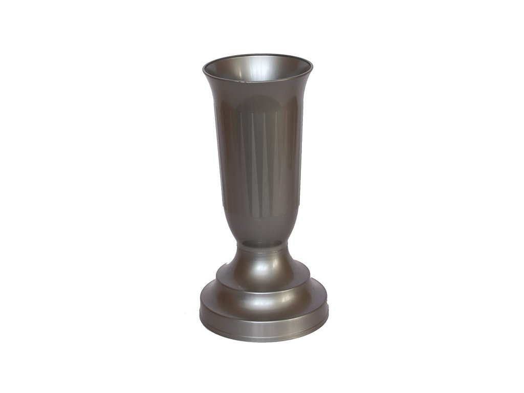 -Plastová váza se zátěží v podstavci určená především na hřbitov, je stabilní ve větru a odolná mrazu.Uvnitř vázy je mřížka pro oporu květin. Materiál: plast Barva: stříbrná Rozměry: výška 25 cm průměr podstavce: 12cm horní průměr: 11,3 cmDoplňkové parametry