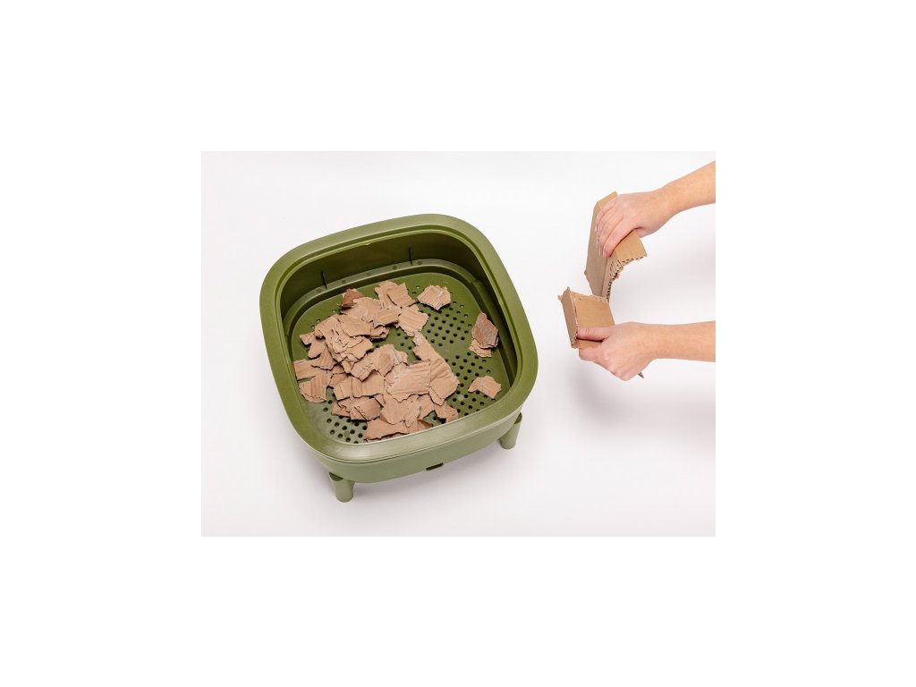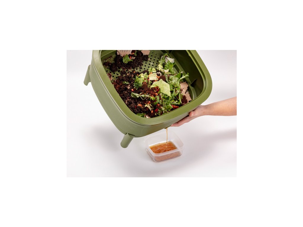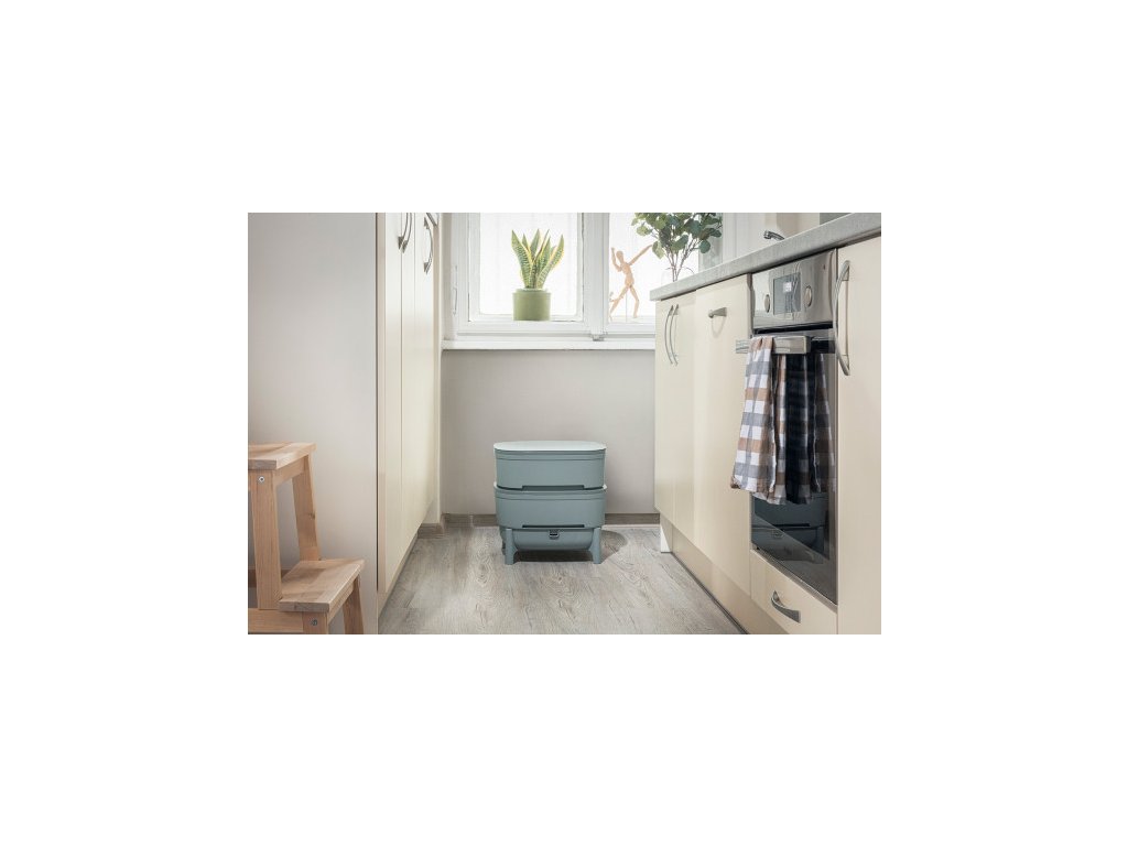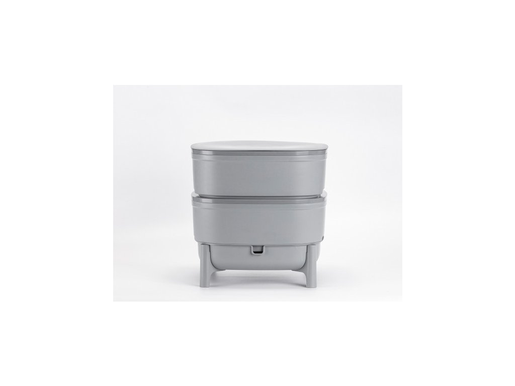 Ideální parťák pro začínající kompostovací nadšence. Vermikompostér je interiérová nádoba, ve které žížaly přemění rostlinné zbytky z domácnosti na vermikompost a žížalí čaj. Získáte tak vysoce kvalitní 100% organické hnojivo pro pěstování pokojových i venkovních rostlin. Překvapí svou kompaktní velikostí, i v té nejmenší kuchyni pro něj najdete místo. Šedý kompostér je vyrobený z recyklovaného materiálu. Jeho přirozenou vlastností je mírná barevná nestálost. Jednotlivé části produktu proto mohou mít drobně odlišné zbarvení. Mohou se také objevit drobné vizuální vady jako barevné tečky či lesklé šmouhy, které však neovlivňují funkci produktu.Balení obsahuje dvě kompostovací patra o objemu 15 l.