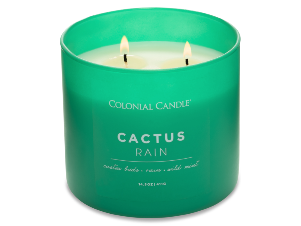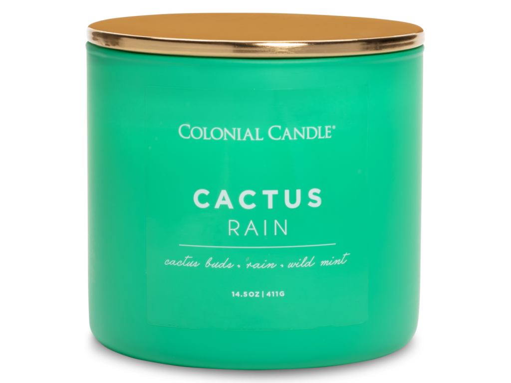 Vzácný okamžik, kdy se nad pouští otevřou mraky a první kapky dopadají na rozžhavené kaktusy, uvolňující jejich svěží vůni. Tento magický pouštní zážitek zachycuje přírodní vonná svíčka Cactus Rain od Colonial Candle. Prémiová sójová svíčka o hmotnosti 410g s třemi bavlněnými knoty nabízí až 60 hodin osvěžujícího vonného dobrodružství, které vnese do vašeho domova energii pouštní oázy po letním dešti.