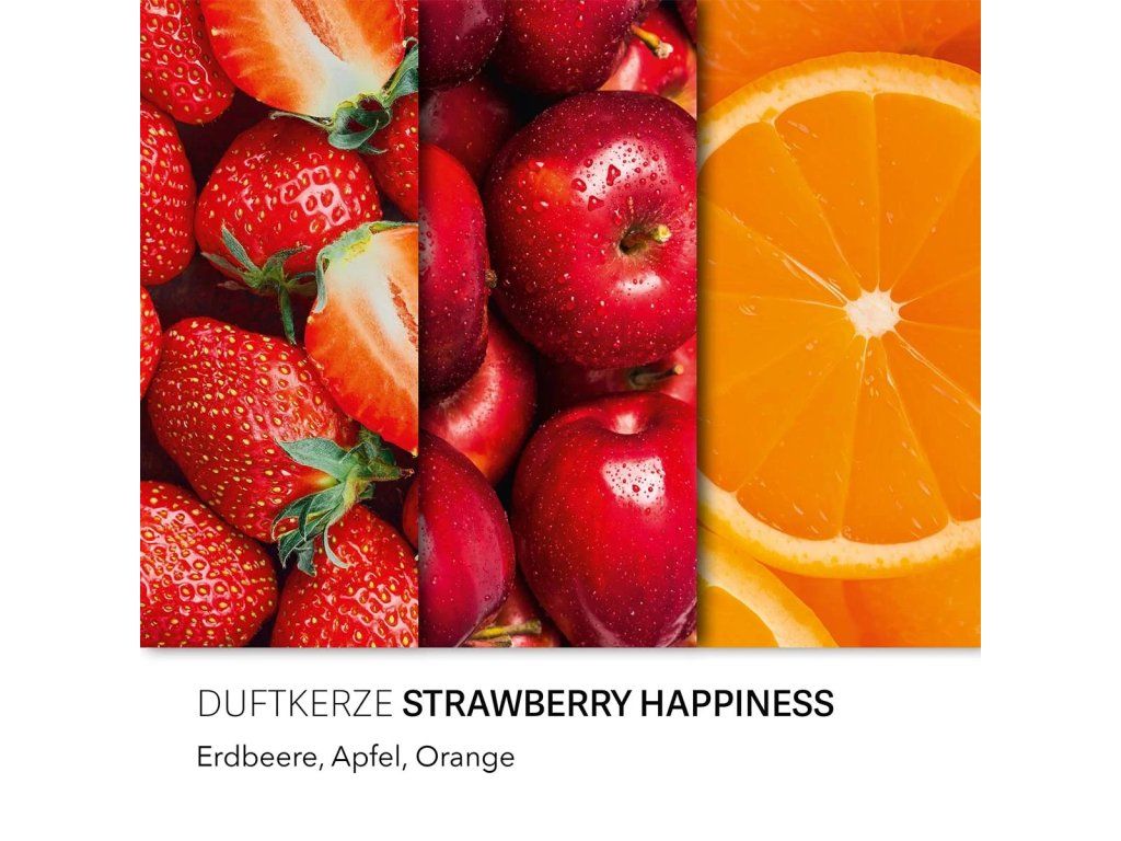 Haribo svíčka Strawberry Happiness začíná svěžím trio pomeranče, jablka a limetky, které postupně odhaluje hvězdu celé kompozice – šťavnaté jahody. Střední tóny broskve přidávají jemnou sladkost a ovocnou plnost, která připomíná čerstvě připravený letní dezert. Základní kokos, vanilka a pižmo uzavírají vůni hřejivým a dlouhotrvajícím pozadím. Tato ovocná vonná svíčka s jahodami je ideální pro milovníky klasických ovocných vůní, které nikdy nezklame a vždy rozjasní náladu.