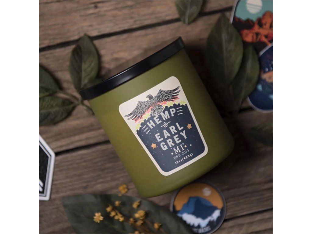 Zelený skleněný obal v retro stylu s rozměry 10,16 × 10,16 × 10,80 cm evokuje přírodní barvy konopných polí. Dvě bavlněné knoty zajišťují stabilní hoření a intenzivní uvolňování vůně, která rychle naplní prostor uklidňující atmosférou.