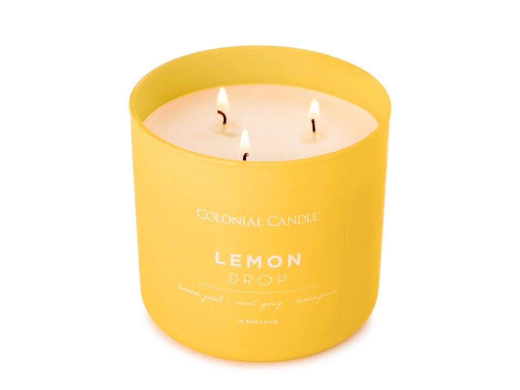 Žhavé letní odpoledne, kdy z džbánu naléváte čerstvě vymačkanou ledovou limonádu s lístky máty. Tato osvěžující chvíle letní pohody je zachycena v luxusní vonné svíčce Lemon Drop od Colonial Candle. Prémiová sójová svíčka o hmotnosti 411g s třemi bavlněnými knoty vytváří až 60 hodin intenzivní citrónové čerstvosti, která do vašeho domova přináší radost slunečných dnů a pocit čisté energie, jež probouzí všechny smysly. 🍋
